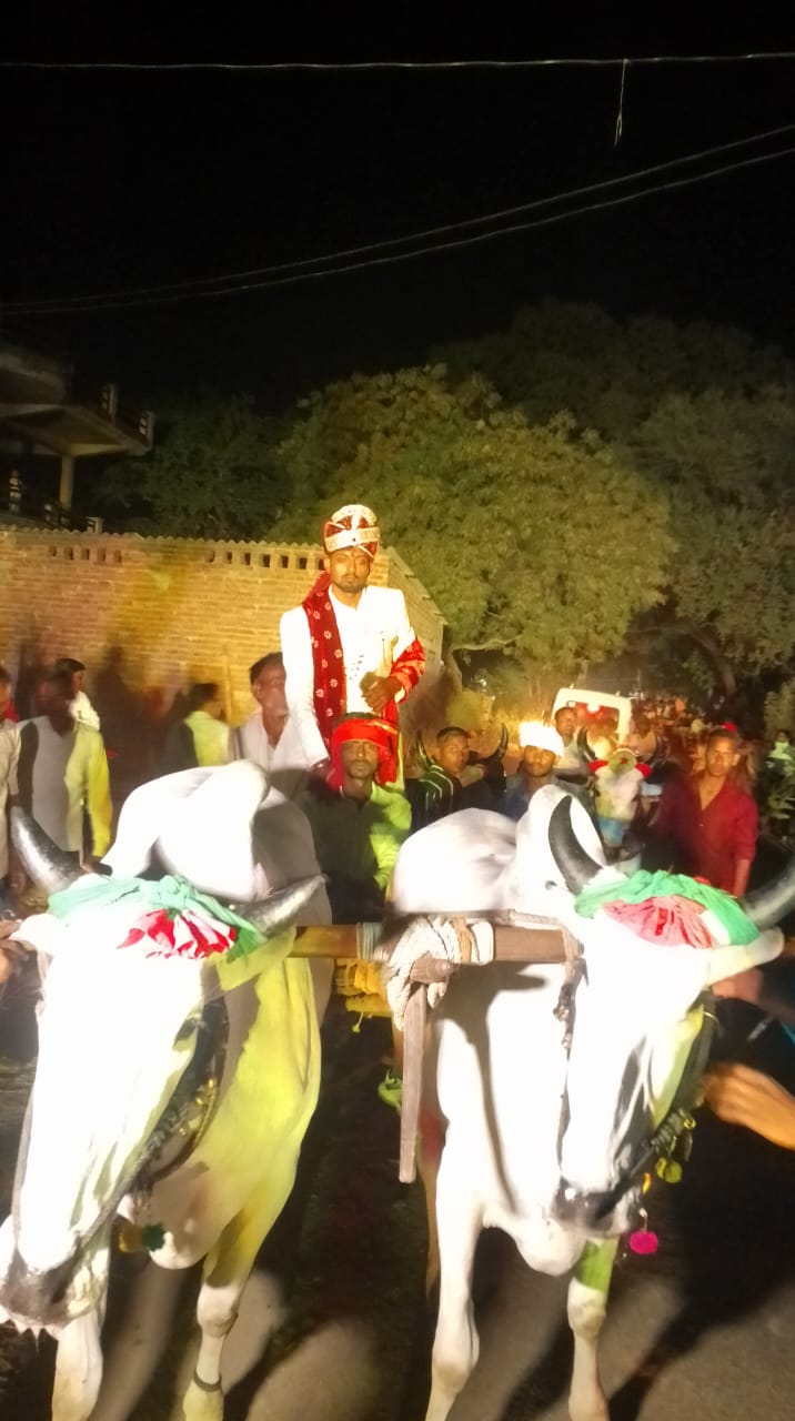बैलों के गले व पैरों में सजे हुए घुंघरू खनखन की आवाज से निकली बारात लोगों के आकर्षण का केंद्र बनी, जिसको देखने के लिए ग्रामीणों की भारी भीड़ जुटी। अपनी दुल्हनियां को लेने के लिए बैलगाड़ी पर सवार होकर जब दूल्हा निकला, तो हर कोई उसे निहारने लगा। चांदी के आभूषण के साथ धोती, कमीज और पारंपरिक वेशभूषा में सजे दूल्हे ने कहा कि उसने अपनी परंपरा निभाई है। देसी अंदाज में निकली इस बारात की लोगों ने जमकर सराहना की।