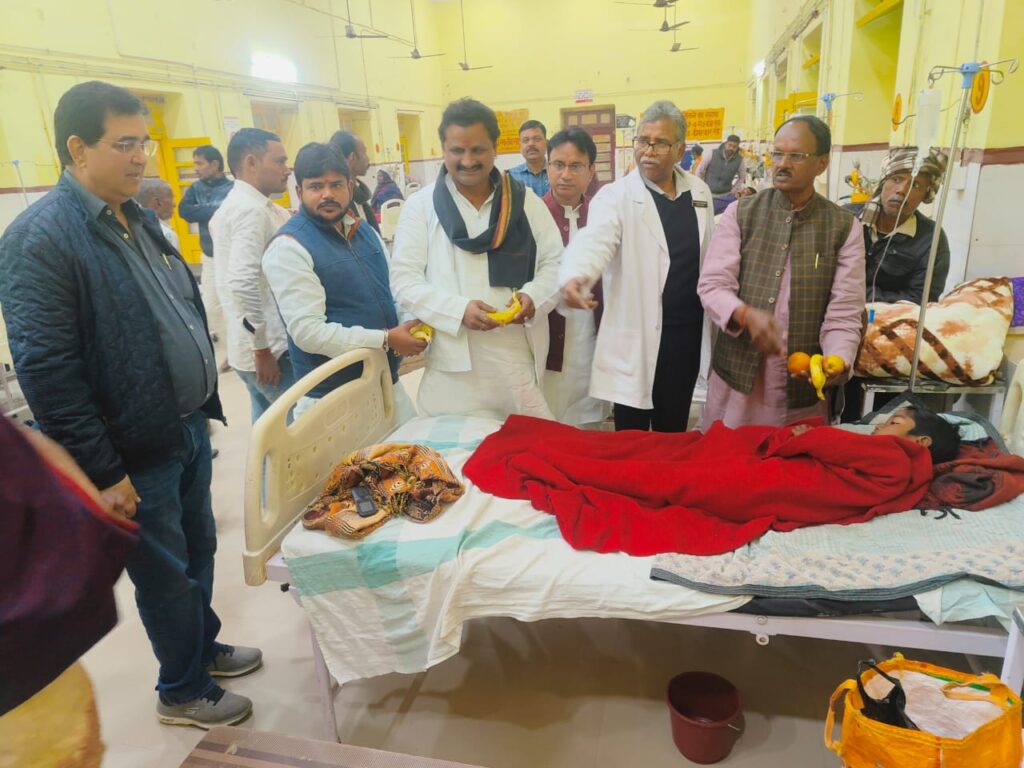 जिला अस्पताल में भाजपा जिलाध्यक्ष की अगुवाई में मरीजों में फल वितरित