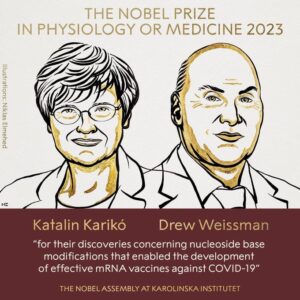- नोबेल असेंबली के सचिव थॉमस पर्लमैन ने की घोषणा नार्वे: चिकित्सा क्षेत्र का नोबेल पुरस्कार काटालिन कारिको और ड्रयू...