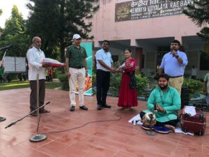 रायबरेली : पीएमश्री केन्द्रीय विद्यालय रायबरेली में रूट्स टू रूट्स संस्था की ओर से छात्रों को कथक नृत्य का प्रशिक्षण दिया गया। छात्राओं को कथक नृत्य की बारीकियां बताई गई। इस दौरान कुछ बच्चों ने कथक नृत्य प्रस्तुत कर सभी को मंत्रमुग्ध कर दिया। गौरतलब है कि रूट्स टू रूट्स संस्था पूरे देश में कार्यक्रम कर बच्चों में स्थानीय लोककलाओं और नृत्यकलाओं के विषय में जागरूक और प्रशिक्षित करती है। विद्यालय में कार्यक्रम की शुरुआत प्राचार्य एस के श्रीवास्तव द्वारा कलाकारों, कथक, नृत्यांगना मीशा रतन, तबला वादक नीलांचल पांडेय और संगठन द्वारा नियुक्त रिपोर्टर शिवम् चौहान को पुष्प गुच्छ देकर स्वागत करके किया गया। इन कलाकारों का स्वागत करते हुए प्राचार्य महोदय ने खोती हुई लोक कलाओं के संरक्षण में उठाये गए कदम की सराहना करते हुए छात्रों को उनकी जड़ों से जुड़ने के लिए प्रेरित किया.