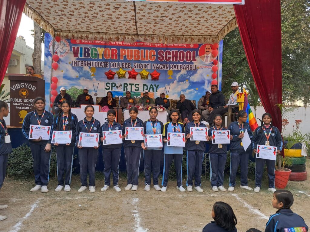 रायबरेली : विब्ग्योर पब्लिक स्कूल शक्तिनगर में चल रहे वार्षिक खेलकूद प्रतियोगिता में खिलाड़ियों ने जीत के लिए खूब दमखम का प्रदर्शन किया। शक्ति नगर शाखा ने 13 गोल्ड, 12 सिल्वर और तीन कांस्य सहित कुल 28 पदक ओवर आल चैंपियन बने। दूसरे स्थान पर चंदौली शाखा ने 8 गोल्ड 9-9 सिल्वर और कांस्य सहित कुल 26 पदक प्राप्त किए। मुख्य अतिथि प्रबंध निदेशक मुदित वर्मा ने ओवरऑल चैंपियन शक्ति नगर ब्रांच को चैंपियनशिप शील्ड देकर सम्मानित किया।