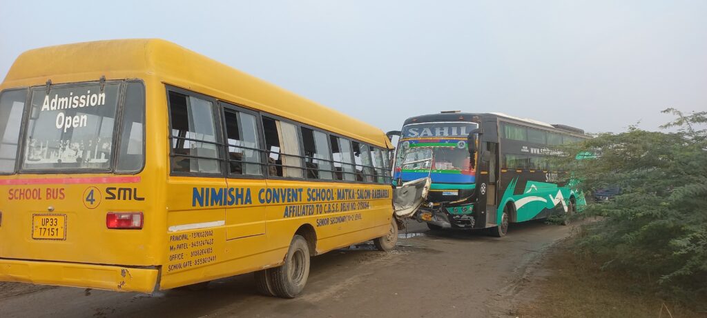 – स्कूली और टूरिस्ट बस की आमने-सामने हुई भिड़ंत